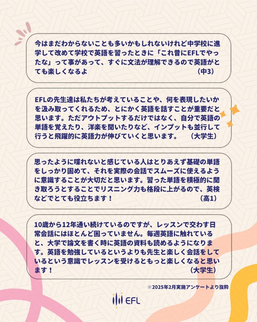 では、なぜEFL Clubでは、週に1回通うだけでここまで高い言語習得が実現できるのでしょうか?